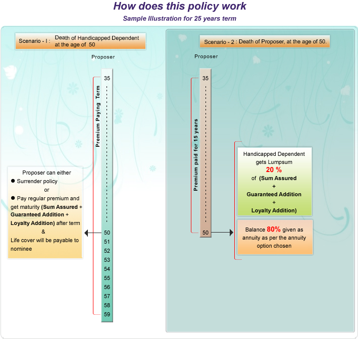 Proposer can take insurance cover on His/Her life to provide for payment of a lump sum and an annuity to the handicapped dependant.